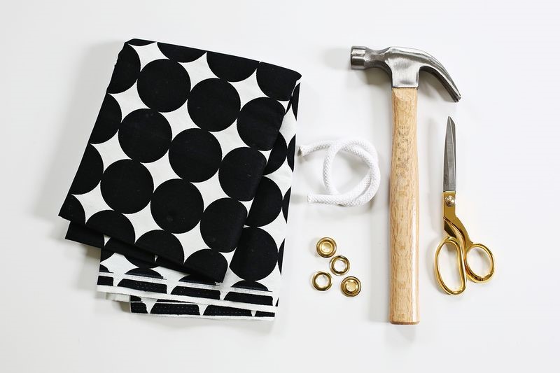 Bước 10: Sau khi gấp phần trên cùng của miếng vải xuống, tiếp theo là làm quai cầm đơn giản cho chậu. Sử dụng bút đánh dấu vị trí để gắn tay cầm vào. Dùng kéo cắt một điểm hình chữ X vào nơi đã dánh dấu. Sử dụng búa để cài những chiếc mắt khoá vào chậu vải. Lặp lại cách làm này cho phần đối diện còn lại.