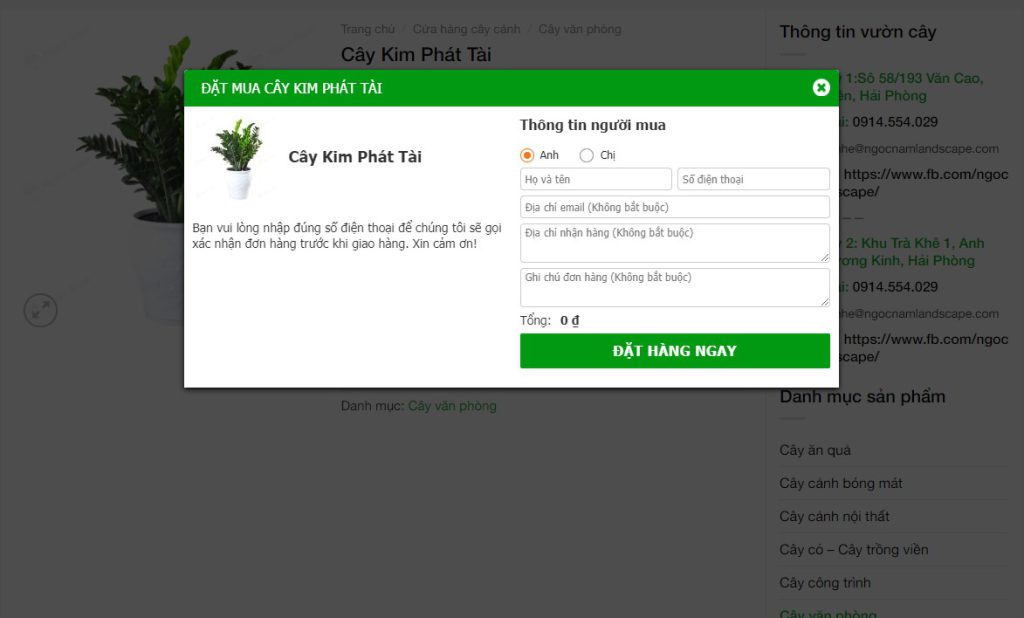 – Ngọc Nam Landscape sẽ chat trực tiếp với bạn và hoàn tất đơn hàng của bạn trên Fanpage.